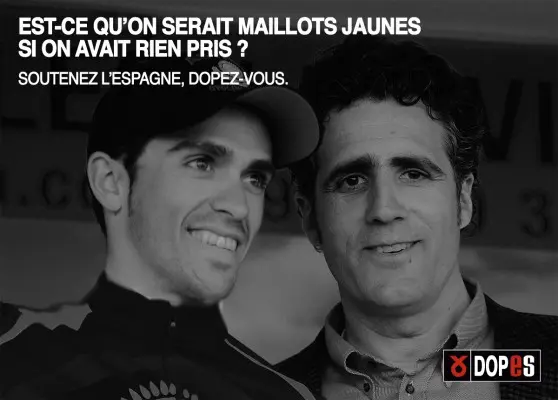 Depuis trop longtemps une polémique secoue nos relations avec nos amis espagnols. A cause de déclarations de perdants et mauvais joueurs que nous sommes, nous mettons en doute leurs performances qui les ont amenées à conquérir de nombreux titres dans plusieurs disciplines. Il est temps que cela cesse. Si vous aussi vous avez marre que l’on traine dans la boue ces grands champions, aidez les en participant au mouvement, dopez-vous !