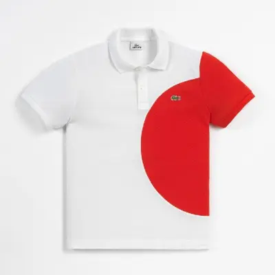 Disponible en boutique à partir du mois d’avril, ces polos ont le célèbre crocodile reprenant les motifs des drapeaux des nations choisies ou le drapeau en son entier sur le polo.