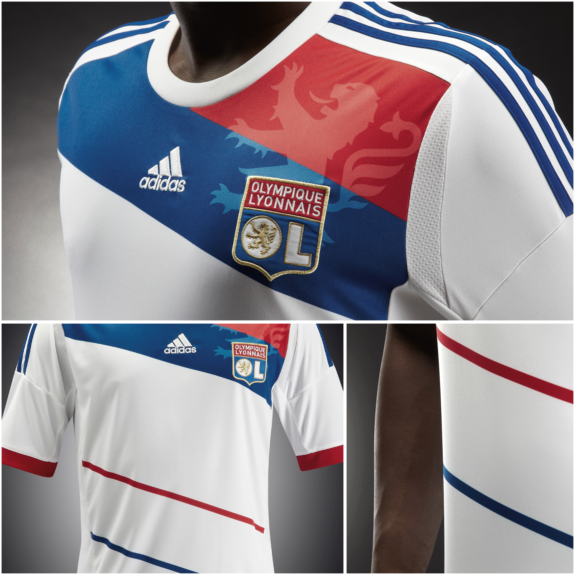- La présence du lion incrusté derrière le logo du club sur la poitrine est un hommage au symbole fort de l’OL et de la ville de Lyon