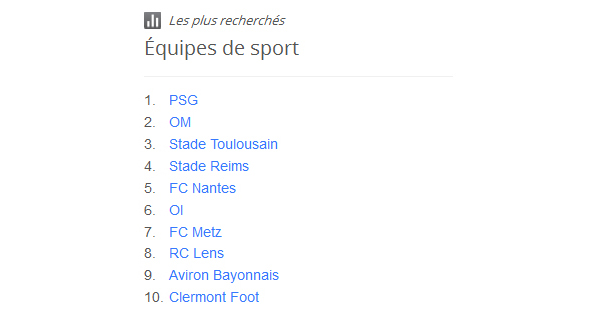 Comme chaque année Google publie le top des recherches dans chaque pays. Alors c’est bien le moment de se pencher sur les requêtes effectuées en France et concernant le sport bien sur. Nous allons détailler le TOP 10 de 4 catégories.