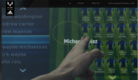 Adidas continue de mettre en avant Lionel Messi sur les réseaux sociaux. Apres avoir invité Messi sur twitter pendant 24 heures, voici que la marque au 3 bandes vient de lancer une nouvelle application Facebook sur la page Team Messi.